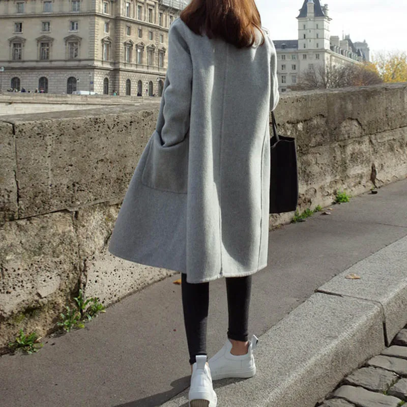 Feature:Outwear Women Winter Turn-Down Collar Pockets Buttons Long Sleeve Solid Casual Long Coat